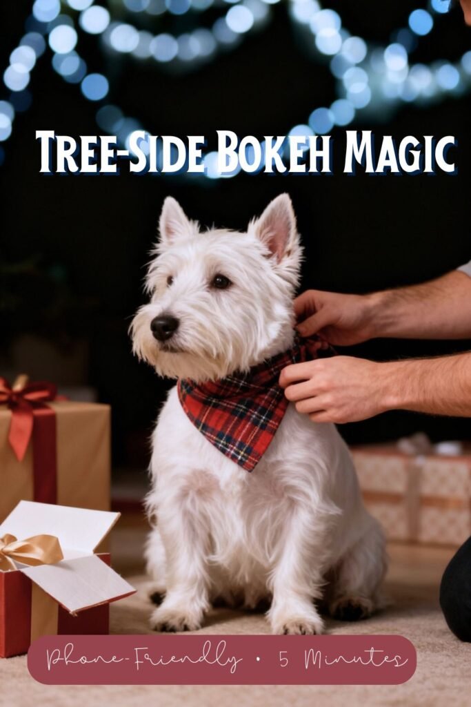 Try the Tree‑Side Sit + Sparkle or Cozy Couch Glow. Keep your dog close to you, put the lights way behind them, and use iPhone Portrait mode. Snap in burst, reward, reset. You’ll get one keeper per minute—promise. 😊