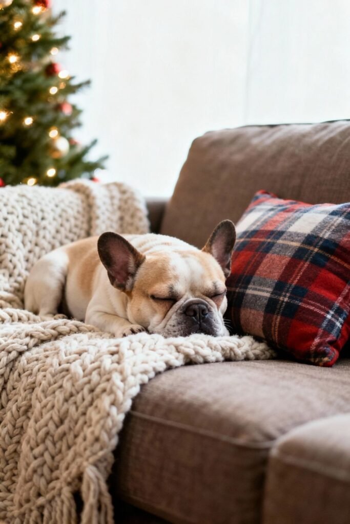 Toss a textured throw and a festive pillow on your couch. Angle the couch so a sliver of tree peeks behind your dog. Shoot at eye level. Keep sentences short, praise often, and keep it fun. AKC’s “get at their level” tip earns its keep every time (AKC).