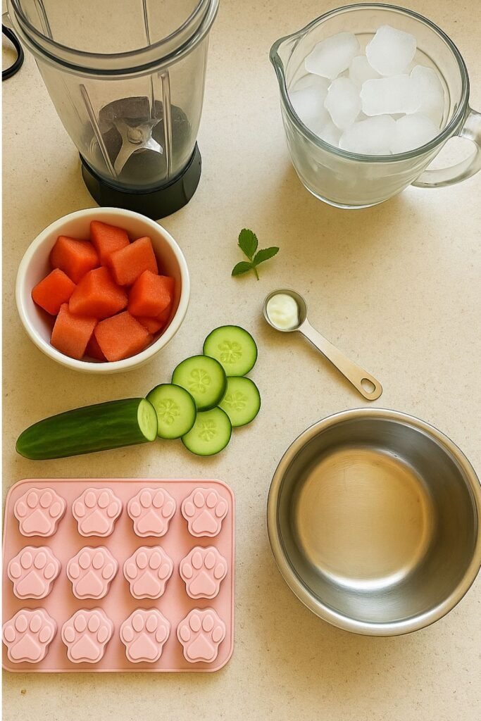 Supplies check: High‑speed blender, silicone paw‑shaped mold (optional), freezer‑safe bowl—oh, and your dogs water bowl.